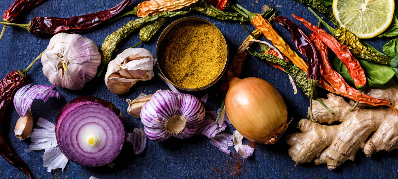 Gebratene Reis mit Ei, Knoblauch, Kurkuma mit Curry Geschmack und mit verschiedenem frischen Gemüse. Wahlweise mit: